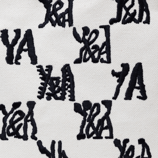 Y&A GRID ZIP TOTE – BLACK ON NATURAL
